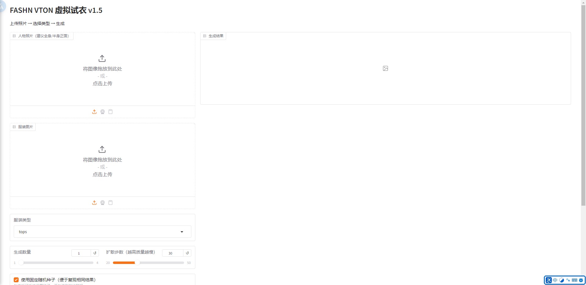 ✅ 上传人像照片 ✅ 选择服装图片 ✅ AI生成试穿效果